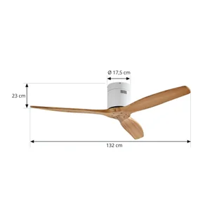 Elegancki wentylator sufitowy Vindur z trzema drewnianymi łopatkami Wentylator sufitowy Vindur jest wyposażony w trzy drewniane łopatki. Są one pięknie zaprojektowane i dostępne w naturalnym, jasnobrązowym kolorze. Zintegrowana funkcja przewijania do przodu i do tyłu umożliwia korzystanie z wentylatora zarówno latem, jak i zimą. Za pomocą dołączonego pilota można ustawić poziom prędkości i timer. Zintegrowany silnik DC gwarantuje również cichą pracę.