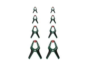 2x 76 mm, 2x 102 mm, 2x 152 mm, 2x 228 mm, Rozstaw i głębokość zacisku: 12-częściowy : ok. 35 x 44 mm, 44 x 39 mm, 60 x 67 mm; 8-częściowy : ok. 28 x 24 mm, 35 x 29 mm, 50 x 49 mm, 85 x 88 mm Materiał: tworzywo sztuczne, stal Waga: