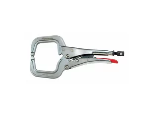 Blokujący ścisk kleszczowy StrongHand C-Clamp typu C 165x46x56 mm. Wersja z zaokrąglonymi końcówkami. Udoskonalone funkcje dla profesjonalistów i majsterkowiczów pomagają w szybkiej, bezpiecznej i efektywnej pracy. Wprowadzone zmiany: zmniejszono ryzyko wyskakiwania pręta regulacyjnego,