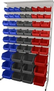 Leomar Regał do pojemników warsztatowych, jednostronny. Wym. 1560x940x400 mm z półką 52 pojemniki, niebieskie, szare, czerwone
