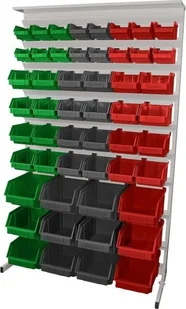 Leomar Regał do pojemników warsztatowych, jednostronny. Wym. 1560x940x400 mm z półką 52 pojemniki, zielone, szare, czerwone
