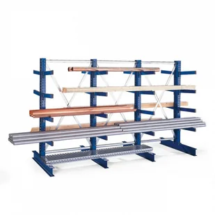 regały wspornikowe są wykorzystywane głównie do przechowywania materiałów ciężkich i długich, takich jak rurki, listwy, płyty, itp. rama i wsporniki wykonane są z profili stalowych performowane, do których umieszczane są wsporniki wsporniki o długości 400-800 mm z regulacją wysokości w sieci 50 mm, dla dowolnej wysokości nośność wsporników 250-535 kg wsporniki są zabezpieczone przed wypadnięciem obciążenie słupka stojącego może być max.