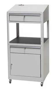 Pulpit warsztatowy. Wysoka szafka z miejscem do prowadzenia notatek. Górna część pulpitu jest pochylona, co ułatwia wygodne prowadzenie zapisów podczas pracy. Zsuwaniu się dokumentów zapobiega podwyższona dolna krawędź i klips do przypinania papieru. W górnej części pulpitu znajduje się przetłoczenie na przybory do pisania. Dokumenty i przybory można przechowywać również w zamykanej szufladzie.