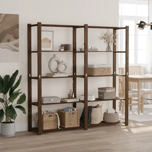 The Living Store Regał z 5 półkami - brązowy - 170x38x170 cm - lite drewno sosnowe - Regał