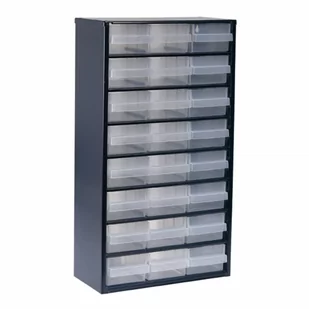 Szafka 137409 firmy Raaco to wszechstronny element wyposażenia do przechowywania małych rzeczy. Produkt jest idealny do przechowywania małych elementów, takich jak: nakrętki, śruby, wkręty i wiele innych. Szafka jest wytrzymała i posiada 24 szufladki. Są one wykonane z polipropylenu i można je podzielić przegródkami na 3 części.