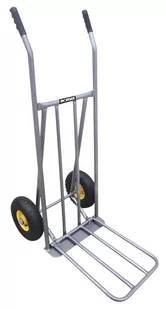Solidny wózek krzywkowy ze składanym dolnym poziomem i dużymi oponami z łożyskami kulkowymi. Wytrzymały i łatwy w obsłudze wózek krzywkowy to poręczna pomoc przy przenoszeniu ciężkich towarów, np. w magazynie, na budowie lub w przeprowadzce. Nośność wózka magazynowego wynosi 200 kg. Stały rozmiar dziobka do podnoszenia: