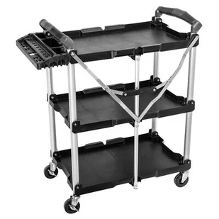 Wózek składany 75 kg z organizerem 84-404 marki NEO o udźwigu do 75 kg. Wózek posiada organizer na narzędzia i 3 półki ułatwiające przechowywanie. Do podstawy przymocowany jest zestaw 4 kół – w tym 2 z hamulcem. Wózek ma składaną konstrukcję z lekkiego, ale trwałego aluminium. Przed rozłożeniem wymiary wynoszą 106 x 42 x 20 cm, a po rozłożeniu – 83,5 x 66 x 42 cm.