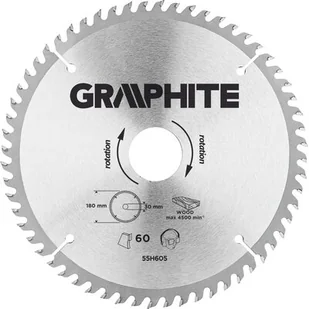 Tarcza do pilarki widiowa GRAPHITE (nr ref. 55H605) o średnicy zewnętrznej 180 mm, wykonana ze stopu stali manganowej MN65 o dużej odporności na temperaturę i odkształcenia. Zęby z nakładkami z węglika spiekanego YG6A pozwalają na zgrubne cięcie drewna i materiałów drewnopochodnych, takich jak sklejka, płyta wiórowa, MDF. Zawarte w opakowaniu pierścienie redukcyjne umożliwiają zastosowanie tarczy do większości modeli pilarek. . . .