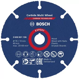 Idealny do cięcia miękkich materiałów szlifierkami kątowymi. Tnie drewno i osadzone wkręty i gwoździe, a także rury z tworzyw sztucznych i wykonuje dokładne wycięcia w twardych panelach, takich jak laminaty i płyty gipsowo-kartonowe.