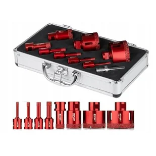 Zestaw otwornic diamentowych jest idealny do wykonywania precyzyjnych wierceń w twardych materiałach, takich jak: gres, płytki ceramiczne, kamienie naturalne. Powierzchnia ścierna wykonana z diamentów osadzonych metodą lutowania próżniowego. Przystosowane do pracy na sucho. Montaż na gwint M14 daje możliwość pracy bezpośrednio na szlifierkach kątowych z maksymalną prędkością obrotową do 12 000/min lub szlifierkach z regulacją obrotów.