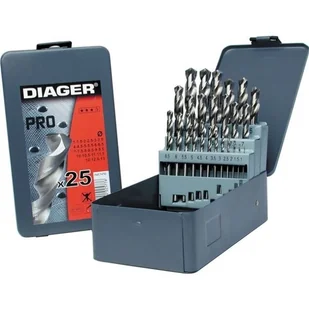 Metalowe pudełko zawierające 25 wierteł HSS Pro Średnica od 1 do 13 DIAGER - Profesjonalnej jakości wiertło HSS z końcówką 118° Ostrzenie w punkcie krzyżowym...