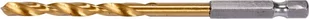 Opis produktu Wiertło z tytanową powłoką do metalu z uchwytem sześciokątnym marki YATO YT-44763.Wykonane z szybkotnącej stali HSS, pokryte tytanową powłoką. Split point pozwala na wiercenie bez wcześniejszego punktowania. Krawędzie wiertła szlifowane. Kąt wierzchołkowy 135 stopni. Szybko odprowadzają ciepło podczas wiercenia w twardych gatunkach stali, nie powodując palenia wierteł. Dedykowane do zastosowań profesjonalnych, wiercenie w stali wysokogatunkowej nierdzewnej, konstrukcyjnej, oraz walcowanej na zimno. Parametry