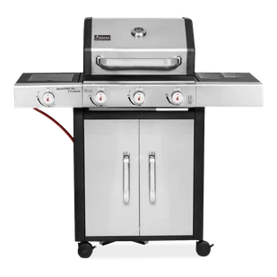 Zapomnij o przypalonych potrawach! Dzięki termometrowi ukazującemu aktualnie panującą w grillu temperaturę masz pełną kontrolę nad całym procesem grillowania. Palniki sercem grilla Sercem każdego grilla są palniki. Grill gazowy QUATRO XL posiada 3 niezależne palniki ze stali nierdzewnej. Palniki tworzą płomień, który daje równomierny rozkład temperatury. Moc 9,0 kW (każdy palnik o mocy 3,0 kW) Grilluj na gazie ze sprawdzonych źródeł (propan, butan, propan/butan).