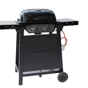Grill gazowy z 2 palnikami ze stali nierdzewnej z możliwością płynnej regulacji (6 kW) i zapłonem piezoelektrycznym ułatwiającym rozpalanie. • Półki boczne (nieskładane): mogą służyć jako bezpieczne miejsce do odkładania potraw z grilla i można je elastycznie złożyć, aby zaoszczędzić miejsce do przechowywania grilla. • Stalowy, emaliowany ruszt grillowy o powierzchni grillowania ok. 49,5 x 34,6 cm dla maksymalnie 6 osób.