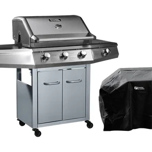 Grill gazowy z diodami LED "Bingo 4" - 4 palniki w tym 1 palnik boczny - 14 kW + Pokrowiec ochronny - Srebrny