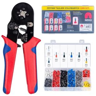 Neku Zaciskarka Praska do tulejek kablowych 0,25-10mm2 z matrycą czworokątną + zestaw tulejek izolowanych DIN 0,5-10mm2 1300szt.