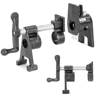 Ścisk stolarski marki MSW sprawdzi się w stolarniach, warsztatach lub pracowniach hobbystycznych do produkcji paneli z drewna klejonego lub do mocowania obrzeży. Uchwyt nadaje się do rur o średnicy 25 mm / 1'' mm, które służą również jako podpora. Rozpiętość określa się na podstawie długości rur, co oznacza, możliwość wykorzystania także do klejenia wielkoformatowych elementów. Dla delikatnych materiałów szczęki mocujące wyposażono w dołączone miękkie podkładki ochronne, które niezawodnie chronią powierzchnię obrabianego materiału. Wrzeciono o długości 105 mm umożliwia obsługę bez wysiłku. Nóżki w kształcie litery H zapewniają stabilność zacisków. Wykonana z solidnego żeliwa obejma na rurę jest niezwykle trwała.