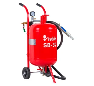 REDATS SB-32 to piaskarka ciśnieniowa do czyszczenia metalowych elementów z rdzy, lakieru czy nagaru. Sprawdza się przy częstszej pracy oraz przy większych elementach niż SB-17 - nadal pozostając poręczną i łatwą do przenoszenia.