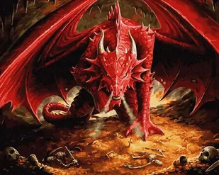 Artnapi 40x50cm Obraz Do Malowania Po Numerach Na Drewnianej Ramie - Czerwony smok 40x50 cm