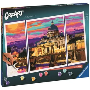 CreArt: Rzym Panorama. Zestawy CreArt zawierają wszystko to, czego potrzeba, by stworzyć swój własny obraz. Malowanie po numerach to to świetna zabawa, która nie tylko ćwiczy sprawność manualną, ale również poprawia koncentrację oraz gwarantuje mnóstwo dobrej zabawy. W CreArt nie ma czarnych konturów - zamiast nich mamy granice wstępnie wydrukowane w kolorze, który będzie potrzebny do pomalowania sekcji. Oznacza to, że w trakcie malowanie krawędzie i obramowania będą wyglądać bardziej profesjonalnie, a efekt końcowy będzie jeszcze bardziej spektakularny.