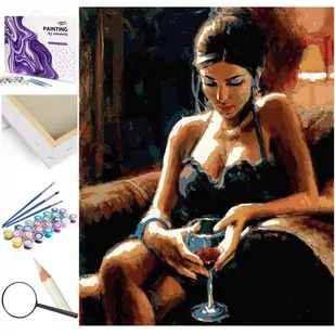 UWAGA: Oferta dotyczy zestawu do malowania po numerach Dziewczyna ze szklanką 40x50 cm NA BLEJTRAMIE