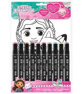 Zestaw kreatywny Gabby's Dollhouse to bogaty zestaw do kreatywnej zabawy dla dziecka. • 10 dwustronnych flamastrów • Wymiary: 29x23x1 cm • Materiał: PVC, papier • Zawartość : 2 kartki do rysowania po numerkach
