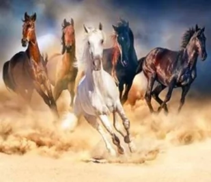 Po pomalowaniu pól wyznaczonymi kolorami, oczom malarza ukażą się Konie .