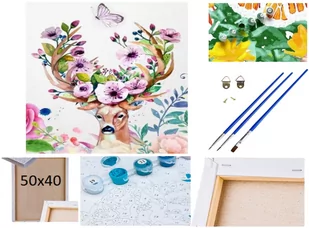Malowanie po numerach Obraz Rama Płótno ZESTAW 5w1 JELEŃ KWIECISTE POROŻE abstrakcyjny