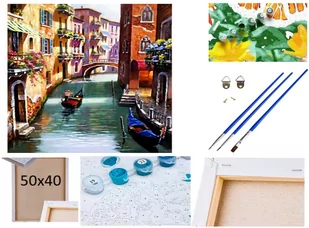 Malowanie po numerach Obraz Rama Płótno ZESTAW 5w1 WENECJA GONDOLA KANAŁ WENECKI WŁOCHY
