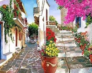 Malowanie po numerach. Uliczka brukowa z kwiatami 40 x 50cm 5711 - Norimpex