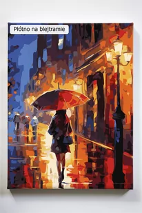 Nocy czas, uliczka, noc, latarnie, deszcz, kobieta, parasol, malowanie po numerach