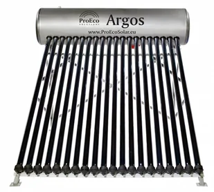 Kompaktowy, ciśnieniowy solarny ogrzewacz wody, jakim jest ARGOS P-200, to idealne rozwiązanie na tanie pozyskiwanie energii Słońca do ogrzewania wody. Ogrzewacz nadaje się do zamontowania bezpośrednio do domowej instalacji ciepłej wody użytkowej, lub pośrednio z wykorzystaniem już istniejących urządzeń, którymi ogrzewaliśmy wodę. Mam tutaj na myśli zarówno ogrzewacze przepływowe jak i zasobnikowe. Klienci posiadający zasobniki (bojlery) zyskują dodatkowo powiększenie pojemności magazynowania ciepłej wody użytkowej. W zestawie dołączony jest stojak ze stali nierdzewnej, który umożliwia nam zamontowanie systemu na gruncie, dachu płaskim, czy po pewnej modernizacji również na dachu skośnym. Zbiornik wykonany jest ze stali nierdzewnej, ocieplany twardą pianką poliuretanową i wykańczany blachą ze stali nierdzewnej.