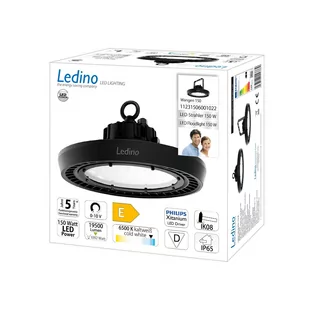 Oprawa LED High Bay Wangen 6 500 K, kąt wiązki 120°Oprawa LED High Bay Wangen składa się z obudowy z odlewu aluminiowego i klosza z bezpiecznego szkła i jest szczególnie odporna na uderzenia (wskaźnik odporności na uderzenia IK08). Wyposażona w sterownik LED firmy Philips, może być podłączona bezpośrednio do sieci 230V. Mocne światło w kolorze dziennym (6 500 K)- długa żywotność do 50 000 godzin- kąt świecenia 120°- możliwość stosowania w temperaturach otoczenia od -30 do 45 °C- wysoki stopień ochrony IP65- możliwość zewnętrznego ściemniania (0-10 V)- test D zgodnie z EN60598-2-24