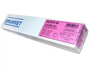 ELEKTRODA RUTYLOWO-CELULOZOWA 2,5mm 350mm SUPER 46+ 3,6kg SPAWMET SUPER 46+ to elektroda rutylowa o bardzo dobrej spawalności do spawania stali niskostopowych i niskowęglowych. Średnio otulona elektroda rutylowo-celulozowa o dobrej spawalności we wszystkich pozycjach. Uniwersalna, zalecana do wykonywania spoin szczepnych, idealna do spawania w warsztacie i na montażu. Dane techniczne: Średnica: 2,5mm Długość:
