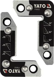 Dane techniczne: Siła trzymania: 25 kg Zastosowanie pod kątami: 30°, 60° i 90° Wykonane ze stali Zapewniają swobodny dostęp do łączonych elementów Zestaw 2 magnetycznych kątowników YT-08722 stosowanych przy pracach spawalniczych i montażu pod kątem różnych elementów: blach, łączników, płaskowników, profili, rur etc.