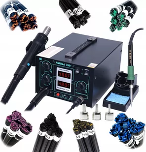 Nowoczesne urządzenie, ulepszony model 706, który teraz nosi nazwę 706+! Dołożyliśmy funkcje sleep do kolby lutowniczej, która pozwala na znaczne wydłużenie żywotności kolby lutowniczej (gdy ta jest nieużywana przez 10 minut automatycznie przełącza się na tryb spoczynku, a temperatura spada do 200 stopni, na wyswietlaczu pojawia się napis SLP, wystarczy poruszyć kolbą, aby ta zaczęła się nagrzewać do wcześniej nastawionej temperatury) Dodatkowo dołożyliśmy przycisk, na kolbie gorącego powietrza, który pozwala na szybkie schłodzenie kolby do 70 stopni, po czym zaczyna dmuchać zimnym powietrzem, a na wyświetlaczu pojawia się napis COL, jest to bardzo przydatne rozwiązanie np. w przypadku rozprowadzania topnika po płytce, czy suszenia elementu, gdy nie chcemy go uszkodzić gorącym powietrzem (bardzo mało stacji posiada tą funkcję) Stworzyliśmy doskonałą stację, w doskonałej cenie, jest to obecnie zapewne najlepszy produkt w tym przedziale cenowym, który na konkurencyjnych stacjach nie zostawia suchej nitki : ) Zestaw, który stworzyliśmy wraz z falą zapytań od naszych klientów, którzy potrzebują przygotować swoje stanowisko pracy. Pytasz co będzie jeszcze niezbędne? Szczere chęci i zapał : ) ❗❗Sprawdź unboxing oraz recenzje urzadzenia w serwisie youtube: