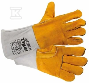 Wysokogatunkowe rękawice spawalnicze z dwoiny bydlęcej, kategoria II, szyte Kevlarem ®. Odporne na wysokie temperatury. Dodatkowe wzmocnienie palców (kciuka) oraz nadgarstka od strony wewnętrznej, z mankietem. Długość całkowita 35 cm. Wyścielone bawełną.