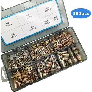 【Co otrzymasz】Zestaw nitonakrętek AKKTOL zawiera 300 nitonakrętek w wytrzymałym przezroczystym pudełku. Zestaw zawiera 70 nitonakrętek M3, 25 nitonakrętek M4, 65 nitonakrętek M5, 60 nitonakrętek M6, 20 nitonakrętek M8, 10 nitonakrętek M10 i 5 nitonakrętek M12.