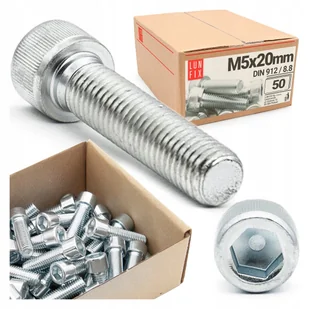 Śruba imbusowa M5x20 z łbem walcowym DIN912 kl. 8.8 ampulowa ocynk 50szt