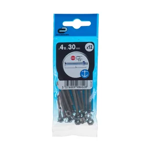 Śruba 4 x 30 mm 12 szt. Standers to uniwersalny łącznik pozwalający na łączenie ze sobą różnych materiałów, jak drewno, metal, tworzywa sztuczne a także montaż akcesoriów meblowych, części maszyn i urządzeń czy elementów konstrukcyjnych. Materiał z którego wykonano łącznik zapewnia wysoką odporność na różnego rodzaju obciążenia. Zestaw zawiera wszystkie elementy potrzebne do wykonania połączenia. Pamiętaj, że do poprawnej pracy łącznika niezbędne jest odpowiednie narzędzie (wkrętak płaski, krzyżakowy, klucz imbusowy, torx lub oczkowy/płaski).