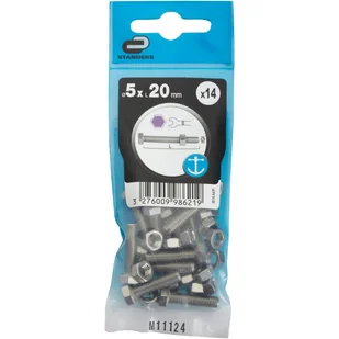 Śruba 5 x 20 mm 14 szt. Standers to uniwersalny łącznik pozwalający na łączenie ze sobą różnych materiałów, jak drewno, metal, tworzywa sztuczne a także montaż akcesoriów meblowych czy elementów konstrukcyjnych. Zestaw zawiera śruby, podkładki oraz nakrętki, a więc wszystkie elementy potrzebne do wykonania połączenia. Pamiętaj, że do poprawnej pracy łącznika niezbędne jest odpowiednie narzędzie (wkrętak płaski, krzyżakowy, klucz imbusowy, torx lub oczkowy/płaski). Rodzaj i rozmiar narzędzia wskazano na opakowaniu.