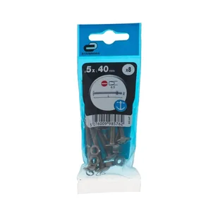 Śruba 5 x 40 mm 8 szt. Standers to uniwersalny łącznik pozwalający na łączenie ze sobą różnych materiałów, jak drewno, metal, tworzywa sztuczne a także montaż akcesoriów meblowych, części maszyn i urządzeń czy elementów konstrukcyjnych. Materiał z którego wykonano łącznik zapewnia wysoką odporność na różnego rodzaju obciążenia. Zestaw zawiera wszystkie elementy potrzebne do wykonania połączenia. Pamiętaj, że do poprawnej pracy łącznika niezbędne jest odpowiednie narzędzie (wkrętak płaski, krzyżakowy, klucz imbusowy, torx lub oczkowy/płaski).