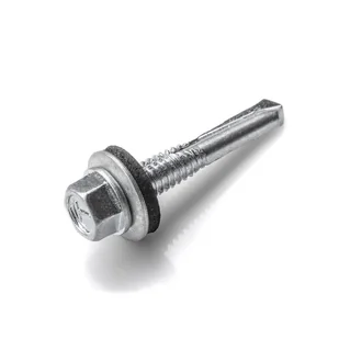 Zabezpieczony przed korozją warstwą ocynku o grubości nie mniejszej niż 12 um. Kształt gwintu oraz jego wysokość jest ściśle powiązany z przeznaczeniem łacznika samowiercącego mocowania blach profilowanych do konstrukcji stalowej. Podkładka uszczelniająca samowulkaznizująca EPDM. Odporna na różnicę temperatur i promieniowanie UV. Specjalny kształt podkładki zapewnia właściwe ułożenie materiału uszczelniającego na zewnętrznej okładzinie materiału mocowanego co gwarantuje uzyskanie szczelności połaczenia.