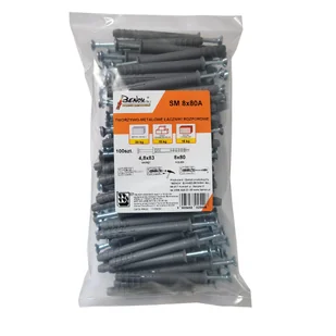 Kołek do szybkiego montażu 8 x 80 mm 100 szt. Wkręt-met pozwala na ekspresowe mocowanie różnego rodzaju elementów, zarówno dekoracyjnych, wykończeniowych jak i konstrukcyjnych. Stosowanie jest banalnie proste - wystarczy wbić kołek wraz z wkrętem w przygotowany wcześniej otwór montażowy w elemencie mocowanym oraz w podłożu. Poprawne i trwałe mocowanie za pomocą kołków szybkiego montażu jest możliwe tylko przy wykonaniu otworów zgodnie ze wskazaniami na opakowaniu (średnica i głębokość otworu, grubość mocowanego elementu)