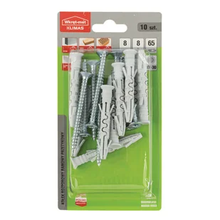 Kołek ramowy 8 x 65 mm 10 szt. Wkręt-met pozwala na mocowanie różnego rodzaju elementów, zarówno wykończeniowych, konstrukcyjnych a także wszelkich urządzeń. Stosowanie jest banalnie proste - wystarczy umieścić kołek w przygotowanym wcześniej otworze montażowym a następnie wkręcić dołączony wkręt lub śrubę. Poprawne i trwałe mocowanie za pomocą tego łącznika jest możliwe tylko przy zastosowaniu się do instrukcji umieszczonej na opakowaniu (średnica i głębokość otworu, grubość mocowanego elementu, rodzaj podłoża, przewidywane obciążenie).