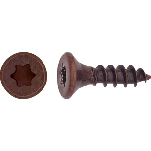 Brązowienie nadaje mu dekoracyjną warstwę przypominającą rdzę, która zapewnia lekką ochronę przed korozją. Łeb stożkowy umożliwia pogłębianie wgłębne materiału. Zapobiega to ostrym krawędziom materiału i zmniejsza ryzyko obrażeń. Ponadto łeb śruby można łatwo otynkować, aby nie był już widoczny.