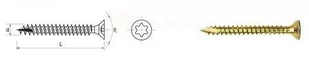 Wkręt do drewna i płyt wiórowych z łbem stożkowym płaskim , ocynkowany na żółto , - z nacięciem torx , - hartowany , - woskowany , - z pełnym gwintem , - opakowanie pudełko 200 szt. EAN: 5410439004039 Waga: 0.