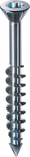 Wkręt SPAX-M do płyty MDF, główka stożkowa, T-STAR plus T20, gwint częściowy, mała główka frezująca 75°, szpic CUT, hartowany, pokryty tworzywem sztucznym.