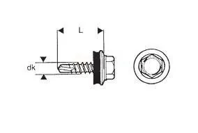 Łącznik wiercący samogwintujący ze stali węglowej utwardzanej powierzchniowo,ocynkowany elektrolitycznie, ze zredukownym punktem wiercącym,gwintem do drewna oraz łbem sześciokątnym podkładkowym, z zamontowaną podkładką stalową z n