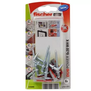 Kołek uniwersalny 6 x 30 WH K NV 6 szt. Duopower Fischer pozwala na mocowanie różnego rodzaju elementów konstrukcyjnych, dekoracyjnych, wykończeniowych jak i wszelkich urządzeń. Stosowanie jest banalnie proste - wystarczy umieścić kołek (kotwę) w przygotowanym wcześniej otworze montażowym a następnie wkręcić dołączony wkręt lub śrubę. Poprawne i trwałe mocowanie za pomocą tego łącznika jest możliwe tylko przy zastosowaniu się do instrukcji umieszczonej na opakowaniu (średnica i głębokość otworu, grubość mocowanego elementu, rodzaj podłoża, przewidywane obciążenie).